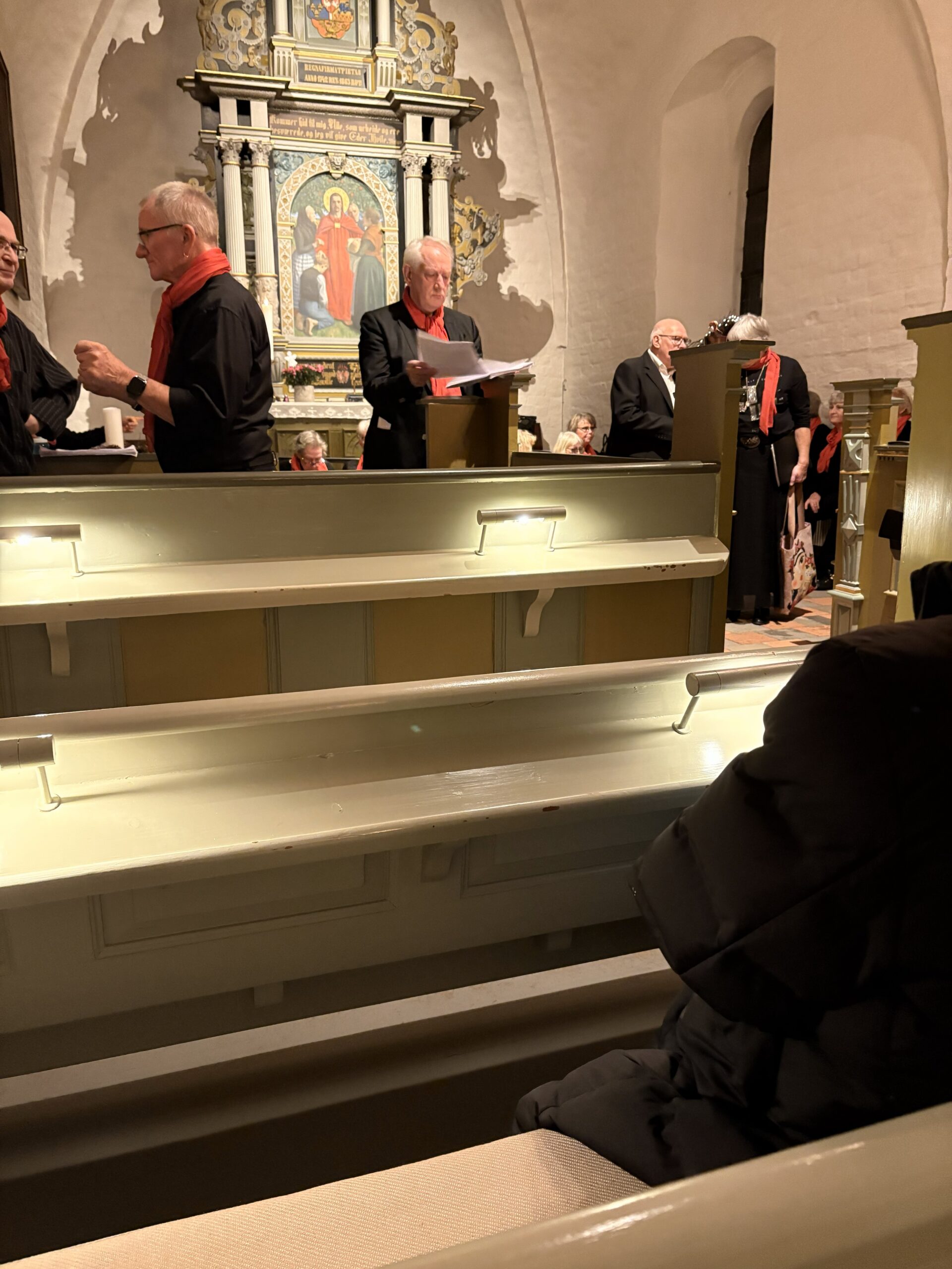 Vejby Kirke var næsten fyldt, og der var mangel på de fortrykte sangark til fællessangen, da Tisvildekoret mandag aften gav koncert i kirken. Koret har arbejdet meget intens i efteråret for at have et nyt repertoire klar til koncerten. Det var første julekoncert med korets nye dirigent, Leif Hauge Christensen, ved pianoet. Og det gik rigtig godt. Stort bifald og ønske om ekstranummer. Publikum fik så ‘Under stjernerne på himlen en ekstra gang. Suzanne har taget billederne.